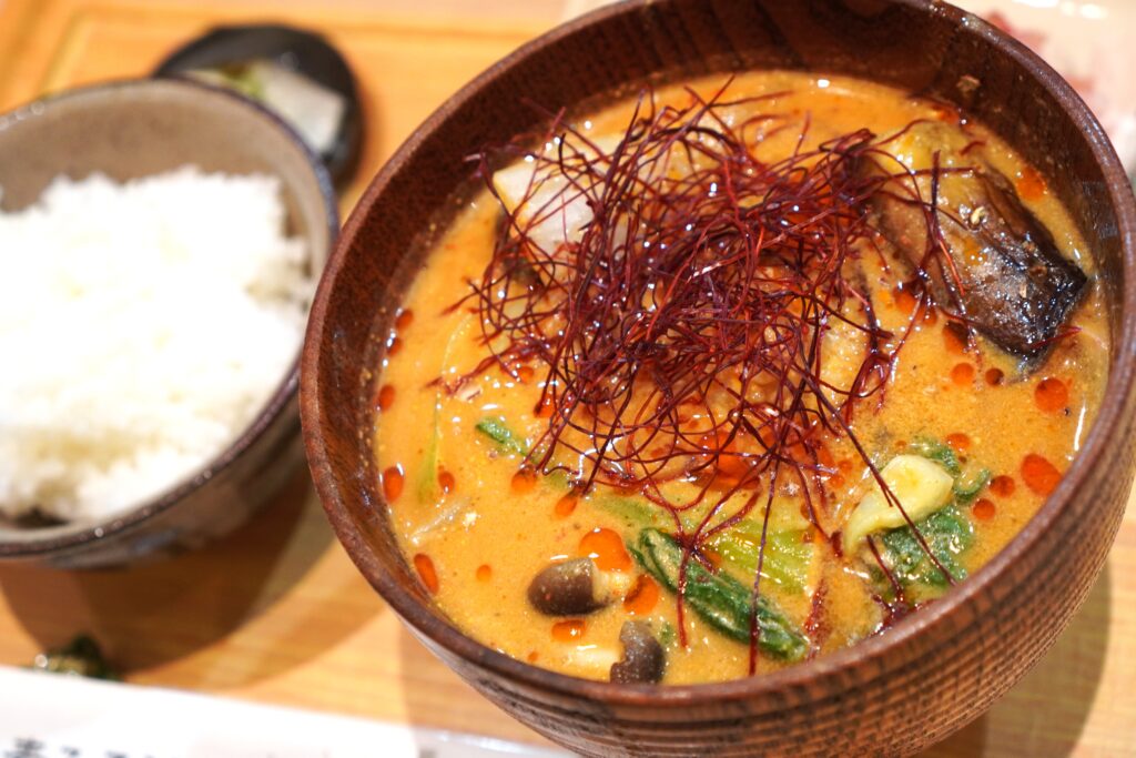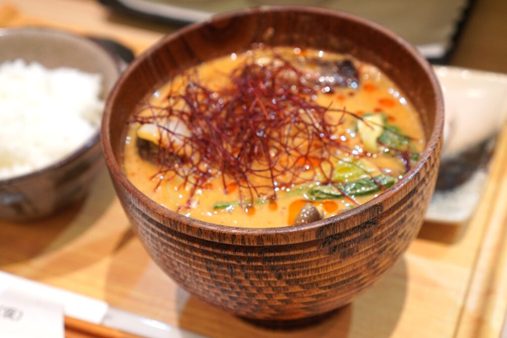 スパイスがふわっと香り、豆乳と味噌の濃厚な風味がたまりません。