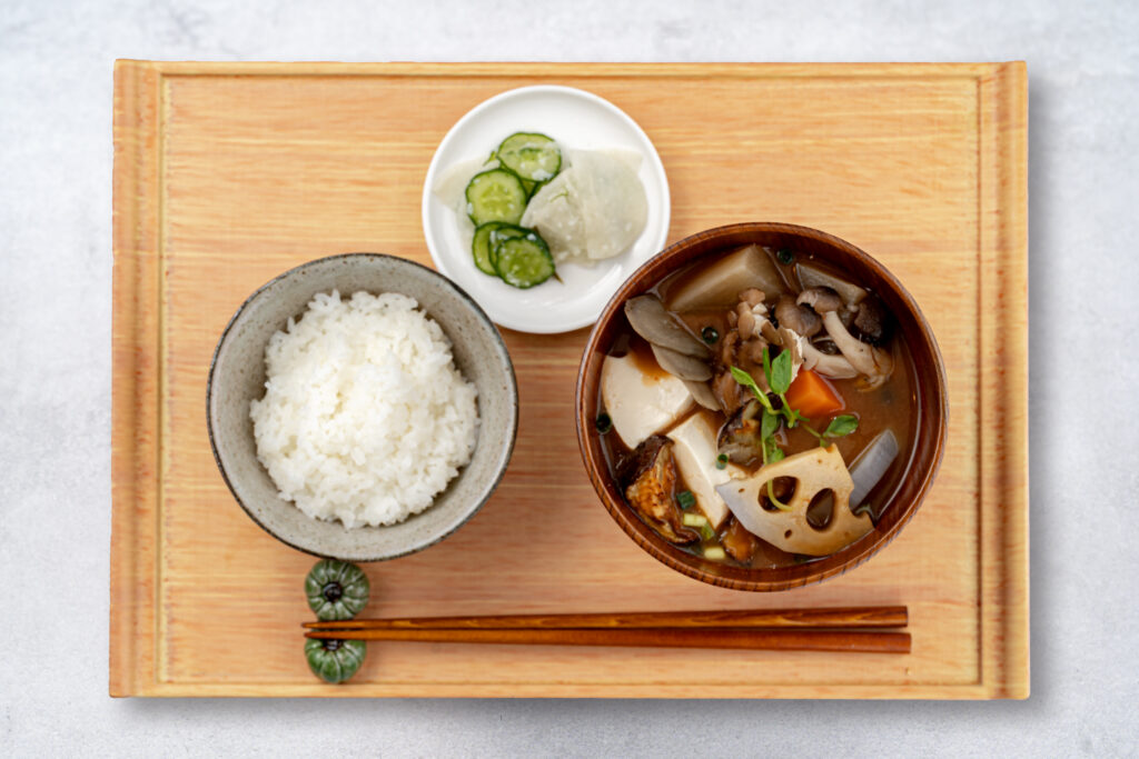 たっぷり季節の野菜が入ったお味噌汁で、身体を内側から温めましょう。